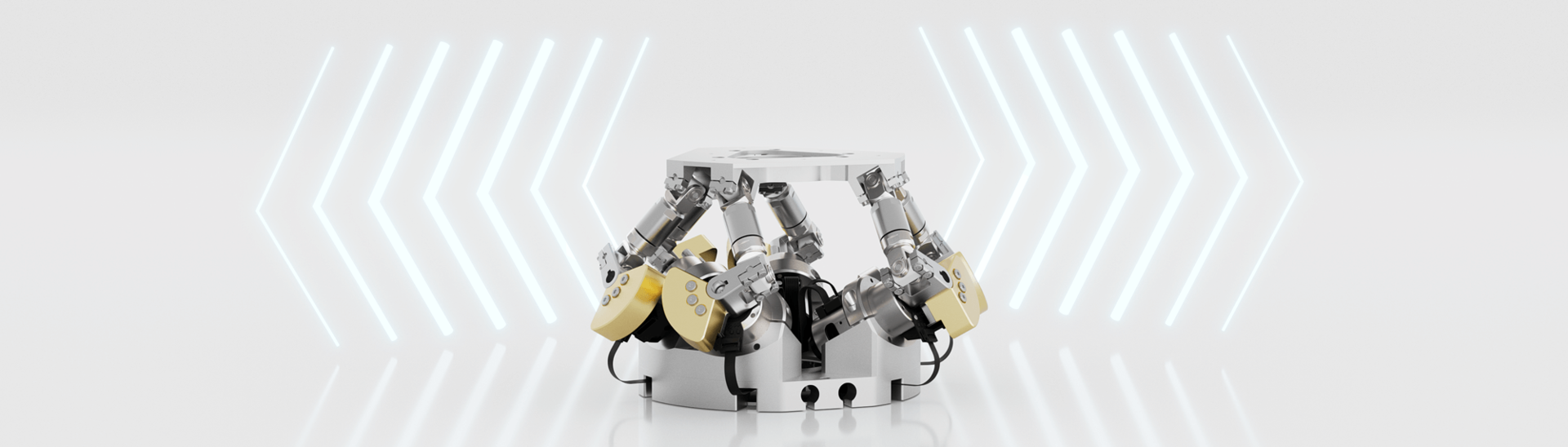 Two more variants are currently under development, and one system has been extensively qualified: a variant with stepper motors for space applications, a variant with a piezo drive for low-temperature applications, and a variant for industrial applications. Furthermore, our development team is working on an integrated safety brake to ensure system safety even in the event of a power supply failure. In the future, our lever hexapods will be suitable for a wide range of applications, such as alignment and packaging in photonics. Due to direct power transmission and improved heat dissipation, they are ideally suited for use in cleanrooms and vacuum environments.