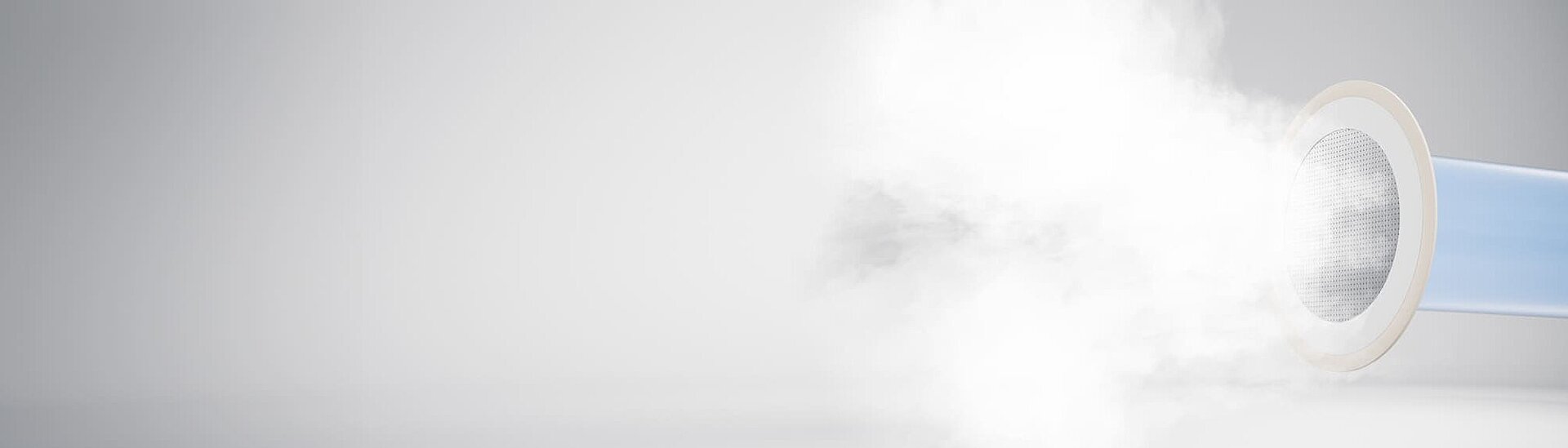There are various nebulizer technologies available on the market—one of them is based on ultrasound, which is generated with piezo technology. For this purpose, a piezoceramic ring element with high-frequency signals is actuated in the non-audible ultrasonic range. The piezoelectric effect creates the smallest vibrations, which make a razor-thin metal membrane vibrate. This membrane is in the center of the piezoceramic ring. It is perforated by numerous microscopically small holes. Due to the effect of this vibration, a liquid or a medication on the bottom side of the membrane is converted into an aerosol on the top, which can then be inhaled.