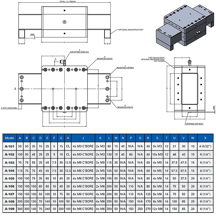A-10x PIglide RB Linear Air Bearing Module