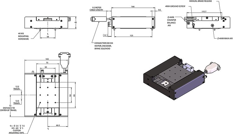 To set up an XYZ system, the vertical mounting option is available for the A-143, including brake and counterbalance.