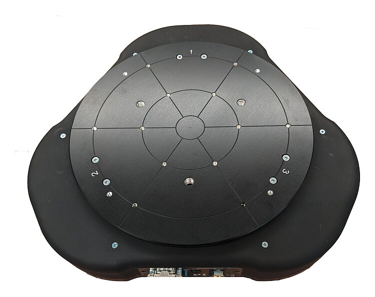 A-523 is an air bearing Z tip/tilt stage with direct drive. Designed as a parallel-kinematic multi-axis system, the platform can be used for Z and tip/tilt motion. This stage offers ultra-precision in miniature format. The combination of the noncontact components results in a frictionless motion platform that offers top performance, quality, and lifetime.