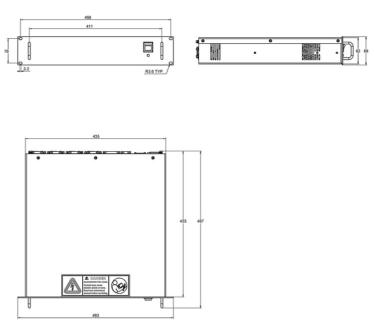 Dimensions | 482.6 mm (19'') × 453 mm (17.8'' = 2U) × 89 mm (3.5'') |