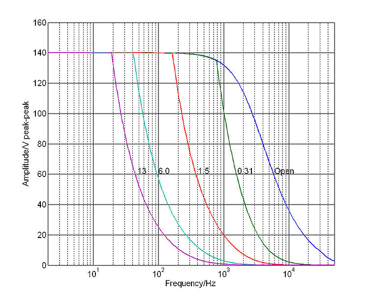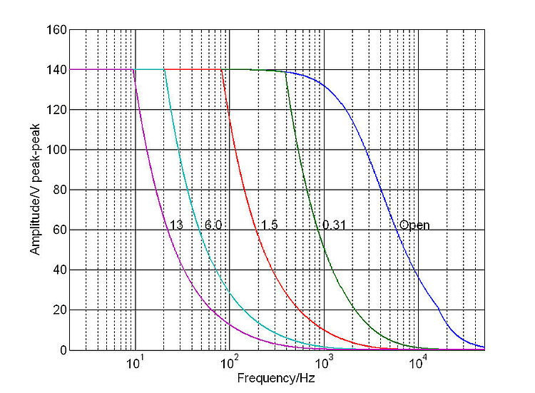 Low-noise power amplifier. Gain value 10. Output voltage range -30 to 130 V, depending on the power adapter used. Monitor output 1 : 100. Overtemperature protection. Solder pins for PCB mounting