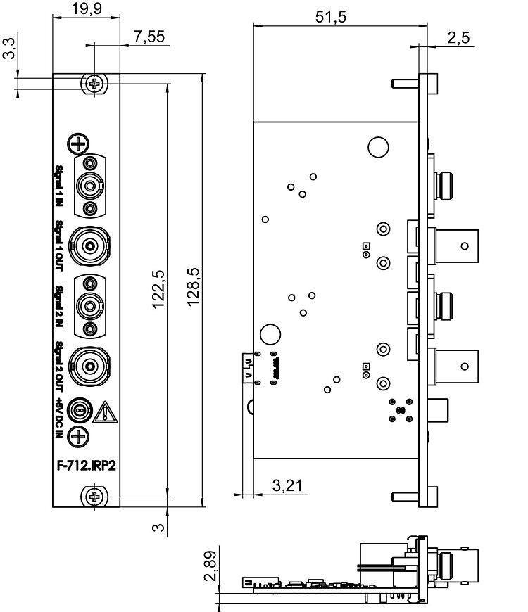 F-712.IRP1, F-712.IRP2 Optical power meter for 600 to 1700 nm wavelength range, 230 pW to 1.3 mW input power, 6 kHz signal bandwidth, 0.1 to 1.6 V logarithmic output