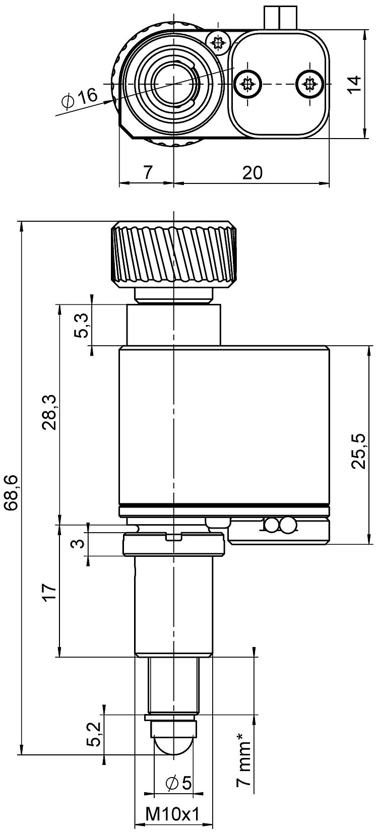 | Mechanical interface | M10×1 mounting thread | M10×1 mounting thread | M10×1 mounting thread | 9.5 mm clamping shank | 9.5 mm clamping shank | 9.5 mm clamping shank | |