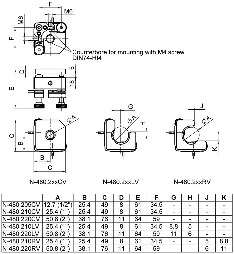 | Miscellaneous | N-480.205CV | N-480.210CV | N-480.210LV | N-480.210RV | N-480.220CV | N-480.220LV | N-480.220RV | Tolerance |