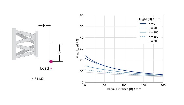 The PIVirtualMove software, which can be downloaded free of charge, simulates the travel range, the alignment, and the permissible forces and torques of the H-811 to facilitate an optimum system configuration. In this context, both the chosen center of rotation and the center of gravity of the load are taken into consideration.