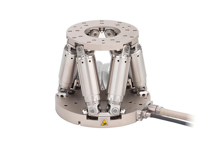 Miniature hexapod for highly dynamic applications; BLDC motor; 2.5 kg payload; 25 mm/s maximum velocity; 0.5 m cable length. Connecting cables are not included in the scope of delivery and must be ordered separately.