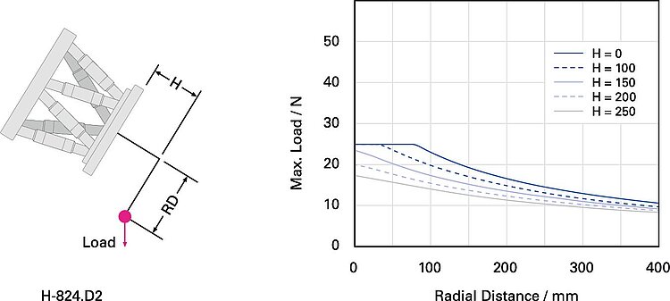The simulation software simulates the limits of the workspace and payload of a hexapod. Therefore, even before purchasing, you can check whether a particular hexapod model can handle the loads, forces, and torques occurring in an application. For this purpose, the simulation tool takes the position and motion of the hexapod as well as the pivot point and several reference coordinate systems into account.
