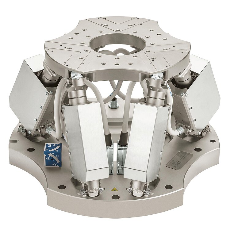 Compact hexapod; brushless DC gear motor; absolute encoder; 30 kg payload; 2.5 mm/s maximum velocity. Connecting cables are not included in the scope of delivery and must be ordered separately.