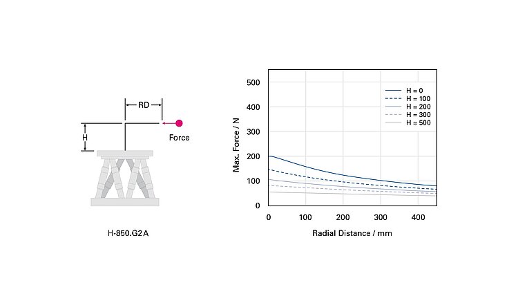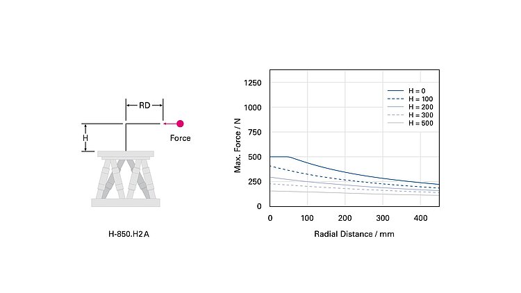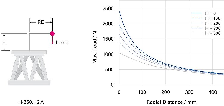 Precision hexapod; brushless DC gear motor; absolute encoder; 250 kg payload; 0.5 mm/s maximum velocity. Connecting cables are not included in the scope of delivery and must be ordered separately.