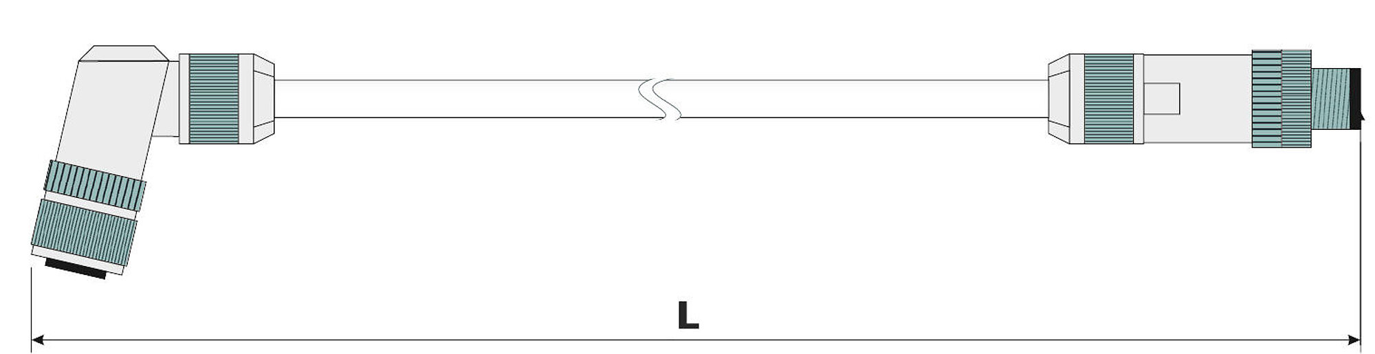 Power supply cable for hexapods, drag chain compatible, M12 m/f angled, 20 m