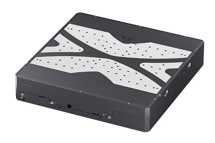 Precision XY stage; DC motor; 305 mm × 305 mm travel range (X × Y); 200 N load capacity; 50 mm/s × 50 mm/s maximum velocity; ball screw; incremental linear encoder, 20 µm sensor signal period, sin/cos, 1 V peak-peak
